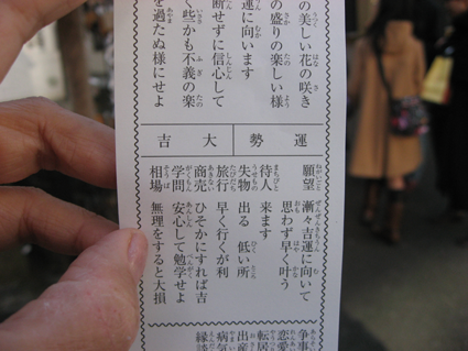 お腹いっぱいになったので、歩こうということになり、どうせなら初詣と思ったので、近くの神社に行く事にしました。 しかし神社だと思っていたらそこは寺でした。 絵馬には、何故か嵐が活躍できますよにと書いてあるのが、圧倒的に多くてビックリしました。 コンサート帰りに寄ったのかな? 私もライセンス応援しているので気持ちはわかります。でも人から見たら、自分のことをまず心配しろと思ったし、私も思われてるのだろうなと思いました。 おみくじをひきました。 神社と間違えていたにもかかわらず、なんと大吉! 家に帰って年賀状を見ていると、いとこに子供が生まれたそうです。おめでとうございます。 その後友達とテレビを見たり、もう1回寝たり、雑煮を食べたりしました。 夜の10時までだらだらと過ごし、終バスの時間になったので、バス停まで行ってお見送りしました。 来年もまた呼びたいなあと思います。 一人になり、同じく寂しい道路をうつしました。 タクシーさえ通っていないです。 いつもは渋滞になるくらい車がいますが、元旦ですものね。 あとの正月休みをどう過ごそうか考え中です。 |